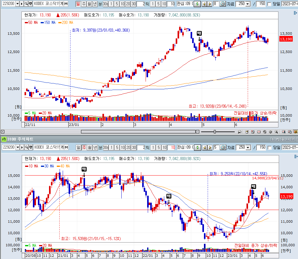 큰 특이사항은 보이지 않음. 여전히 코스닥 차트는 에코프로 차트와 유사하게 M자 패턴을 만들고 있기에 부정적이며, 코스피차트는 상승추세에 있기에 긍정적으로 바라보고 있다.