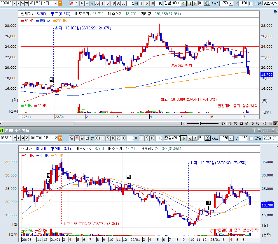 에프에스티는 처음에는 후보군에 있었지만 흐름이 좋지 않으면서 우선순위에서 밀렸는데 너무 힘들게 패턴이 무너졌다. 관심종목에서 아웃이다.
