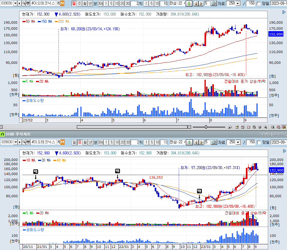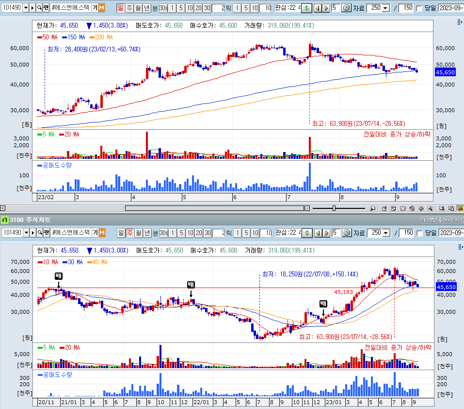 계획 3. 에스앤에스텍 150일선 지지를 못 받고 하락하는 경우 -> 손절하기
