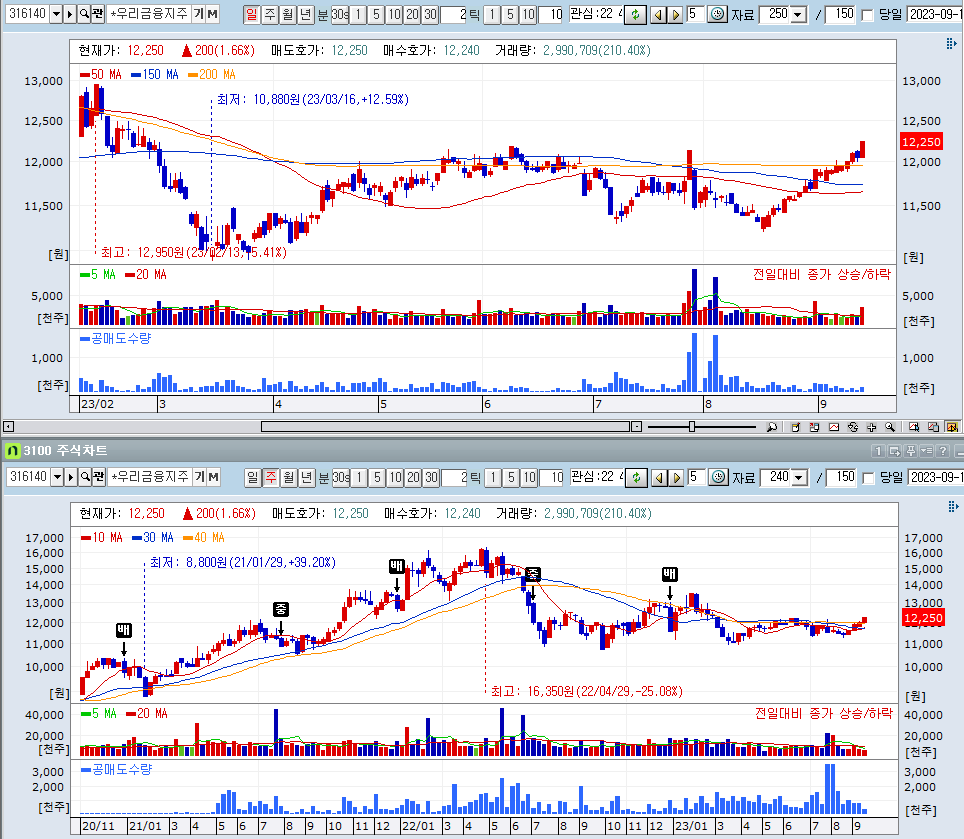엔터 쪽 대장인 JYP도 풀백이 보인다. 추가적으로 대주주양도세 이슈도 무시할 수 없기 때문에 올해 엄청나게 많이 오른 종목은 매도세를 생각해야 할지도... 기간조정이 나올 수 있다고 본다. 그런 의미에서 가장 무난하고 안전한 선택을 현재까지 시세를 주지 않았으면서 서서히 오르고 있고 배당도 있는 은행주아닐까.