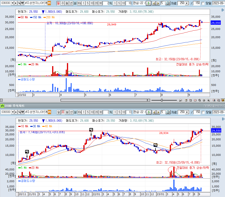 계획 3. 에스앤에스텍 150일선 지지를 못 받고 하락하는 경우 -> 손절하기 -> 150일선 지지 받음