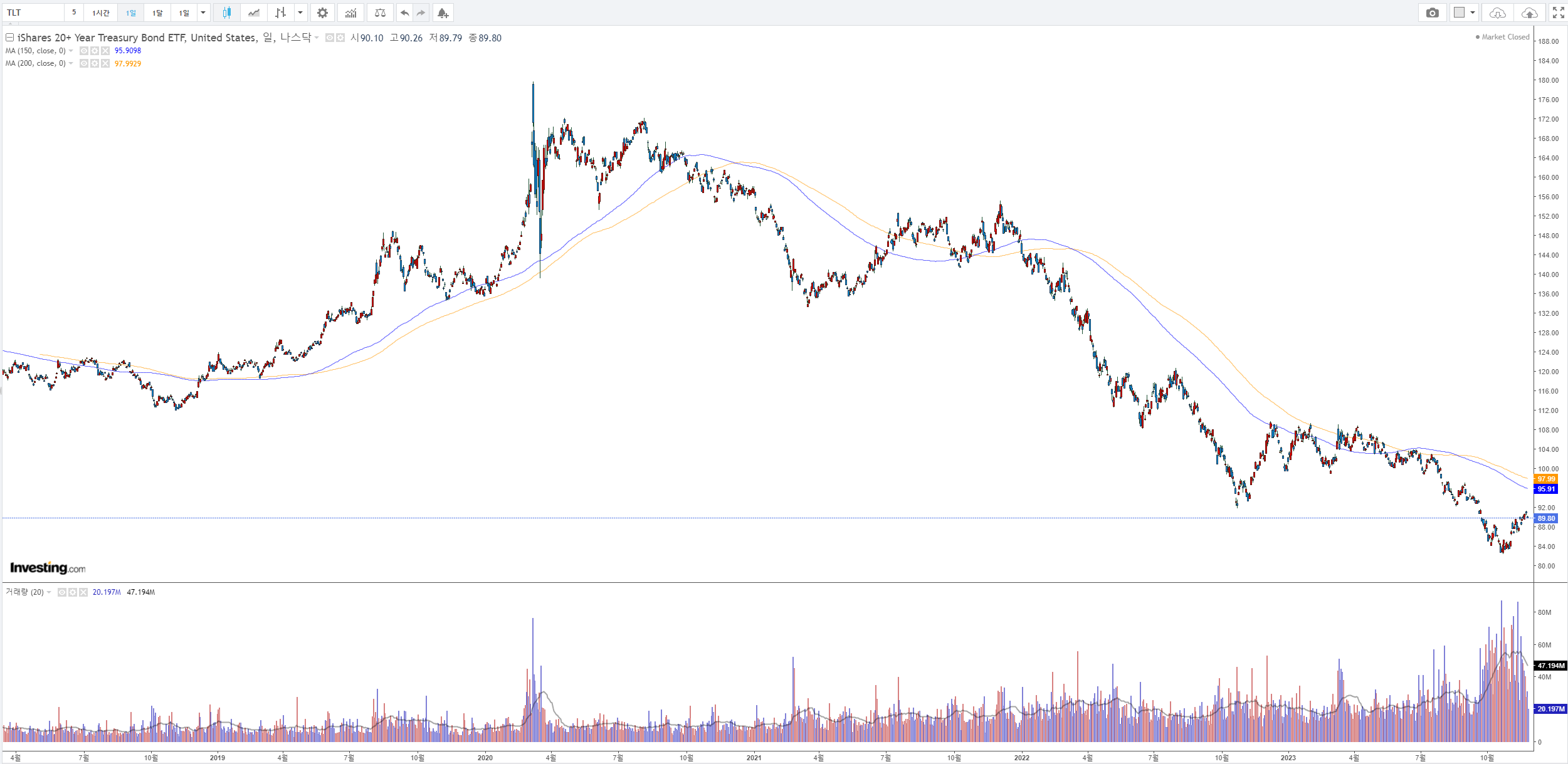 4. 채권(TLT, TLTW, TMF) : 1단계 진입 중... 해당 구간에서 횡보하고 이평선과 이격이 좁혀지면 TLTW 매수시기.