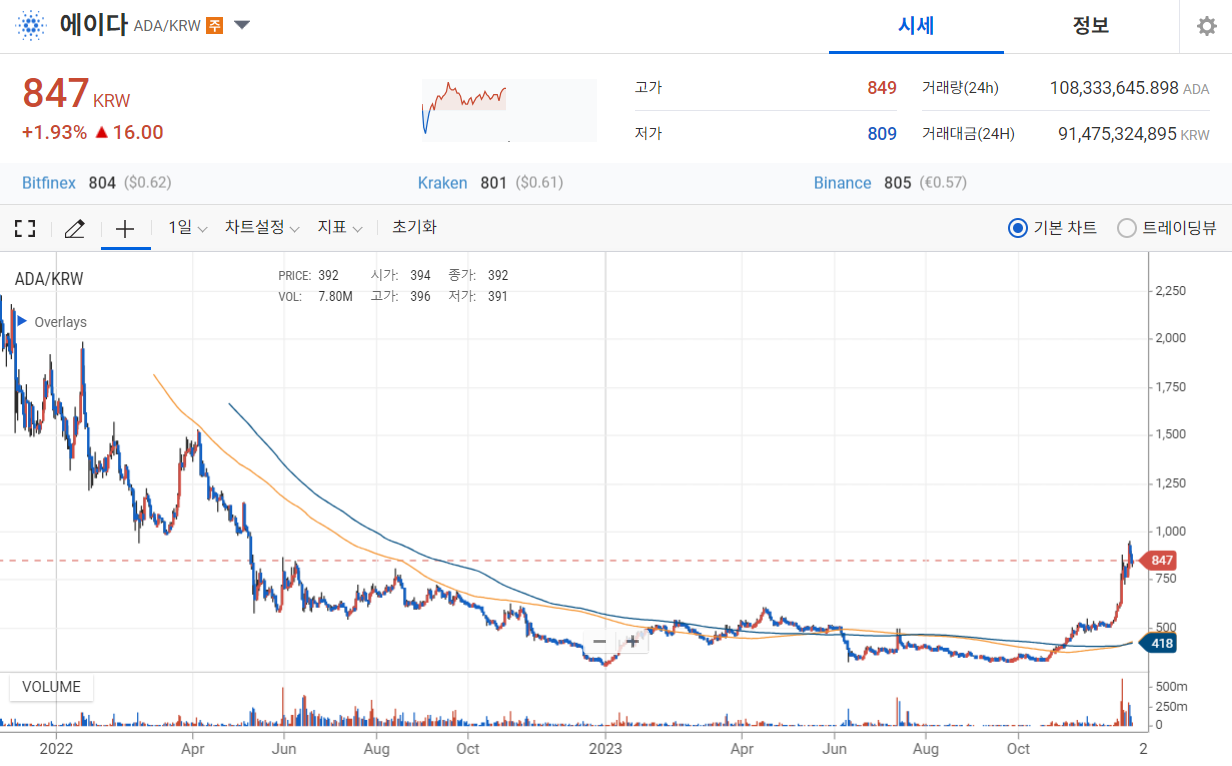 5. BTC, ETH, ADA, SOL : BTC 6,000만 원 달성 후 가조정. 모두 안정적인 2단계 흐름을 보여주지만 단기과열상태로 볼 수 있음. 김치프리미엄이 금주 5% 내외를 지속적으로 유지 중임. 고질적인 김프문제는 해결이 어려울 듯.