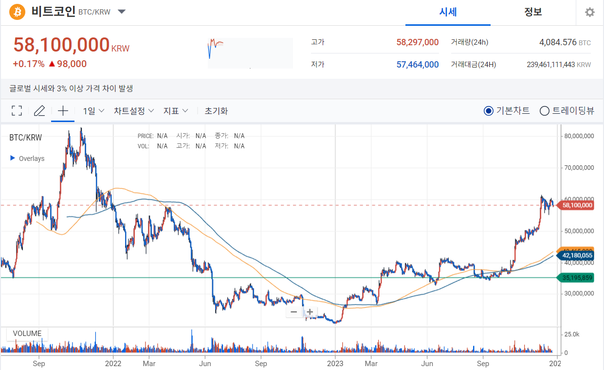 5. BTC, ETH, ADA, SOL : BTC 6,000만 원 달성 후 가조정. 모두 안정적인 2단계 흐름을 보여주지만 단기과열상태로 볼 수 있음. 김치프리미엄이 금주 3% 내외를 지속적으로 유지 중임. 지난주보다 약간 하락하였음. BTC가 6천만 원을 돌파하여 상승하는 것은 차트적으로 큰 의미가 있어 보임. 현재 가격에서 매물출회를 소화하고 베이스를 다지고 돌파할 때 매수가 유효해 보임.