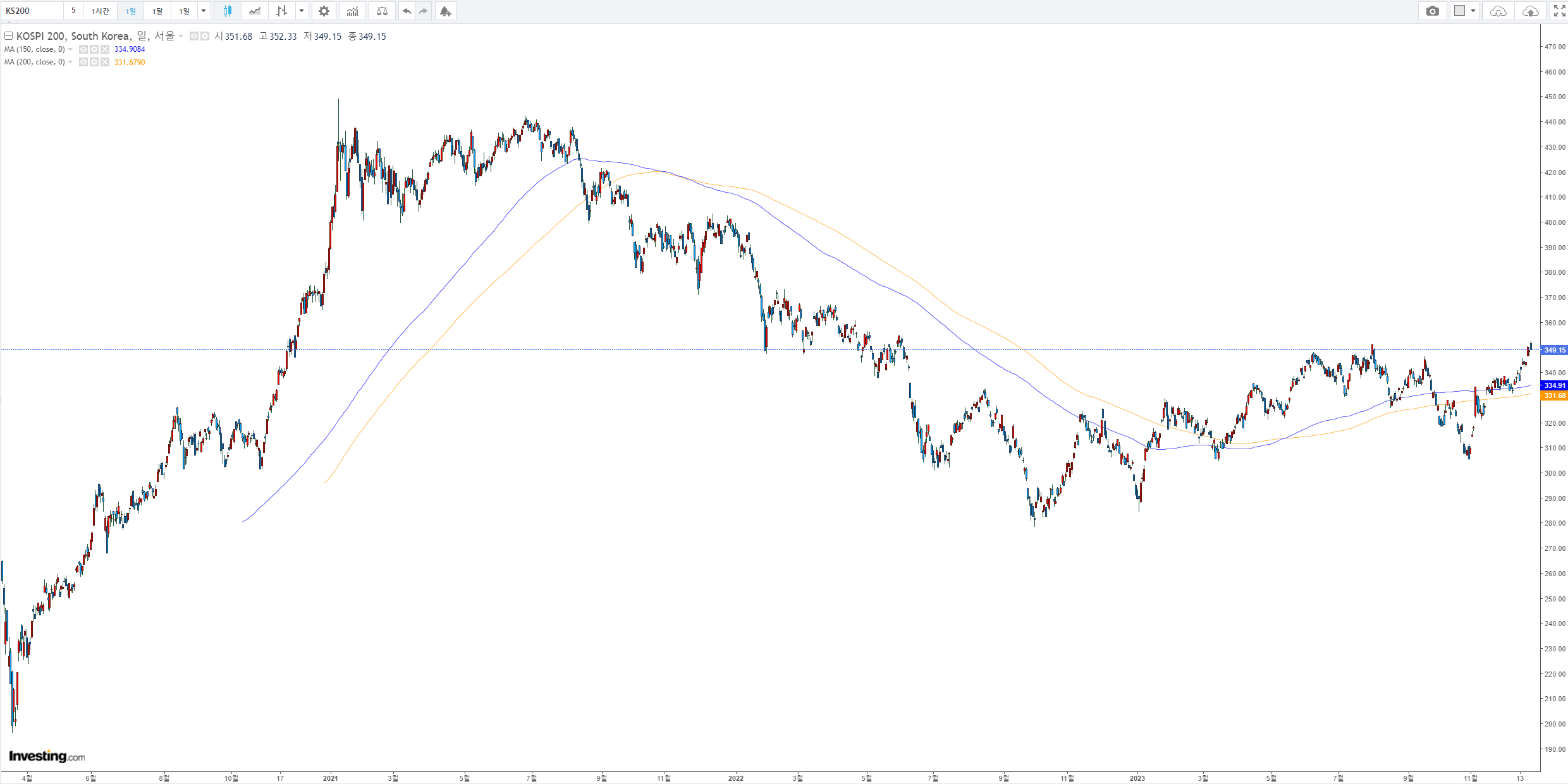 3. 코스피 200, 코스닥 150 : 코스피의 흐름이 더 기대되는 차트. 코스닥의 상방에는 상당한 매물벽이 존재한다. 코스닥 지수적으로 큰 상승보다는 기존 주도주는 횡보하거나 흐르고, 새로운 주도주가 나오면서 지수의 상방은 막힐 것으로 예상해 본다. 반대로 코스피는 2,600pt를 돌파하면 코스닥에 비해 상방은 조금 더 가볍게 열려있을 것으로 기대.