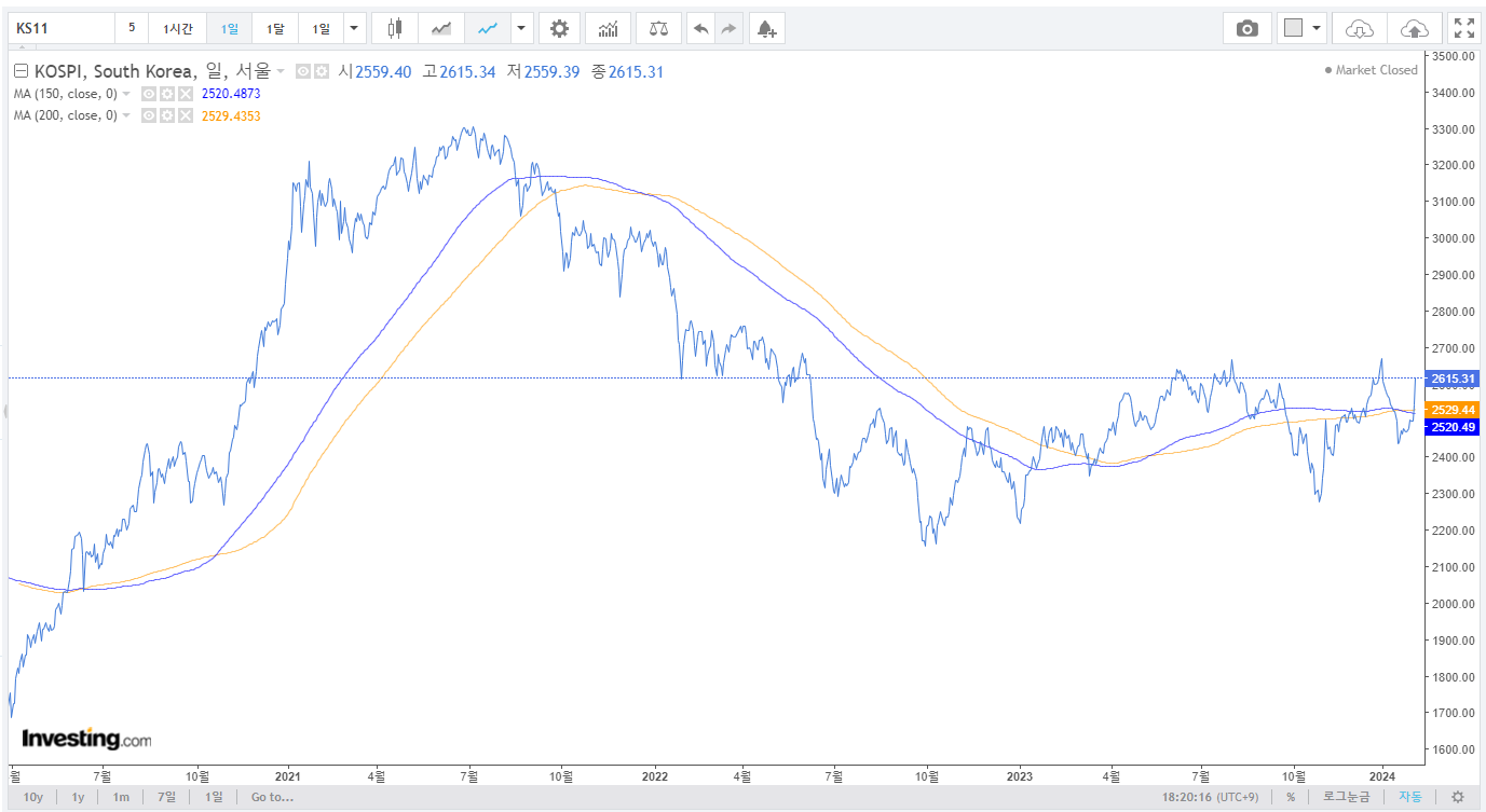 우리시장보다 미국, 일본, 인도시장의 지수가 훨씬 강하기 때문에, 해당 지수에 롱포지션을 잡는 것이 더 유리해보인다.