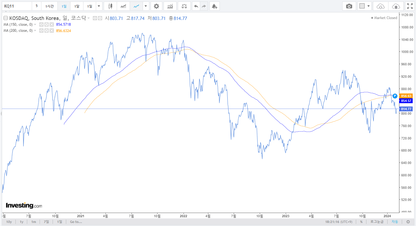 3. 코스피, 코스닥 : 미국장과 다른 흐름을 보여주면서 하락이 지속되었음.
