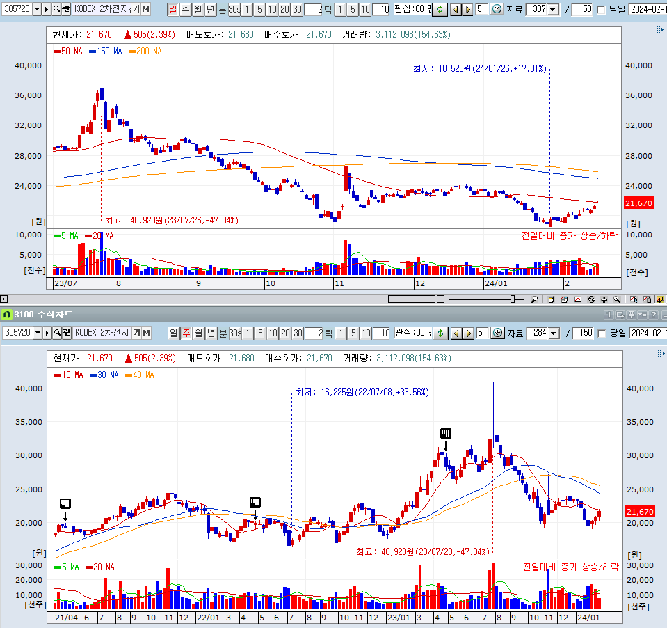 금주에 반도체 비중을 저 PBR주로 이동하였음. 현재 반도체 25%, 은행주 20%, 현금 약 5%, 2차 전지 인버스 50%. 코스피 2단계 진입하는 경우 현금사용하여 관련주 추가매수 가능. 2차 전지 인버스 비중 조절 가능.