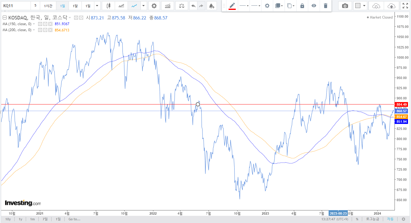 만약 코스닥이 900pt에 가까워진다면 2차전지 인버스를 추가 매수하는 방안도 고려 중.