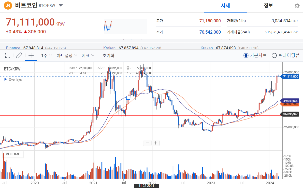 김프가 조금씩 있다 사라졌다 하는데 현재는 4%로 경계수준. 아직 시장의 관심이 주식에 있다. 반감기와 주식의 하락장이 맞물리고 가상자산만 수익률이 좋은 상태가 연출된다면 큰 상승장이 올 수도 있다. 21년도 하반기부터 월급날마다 적립식 BTC 매수전략은 아직 유지 중.