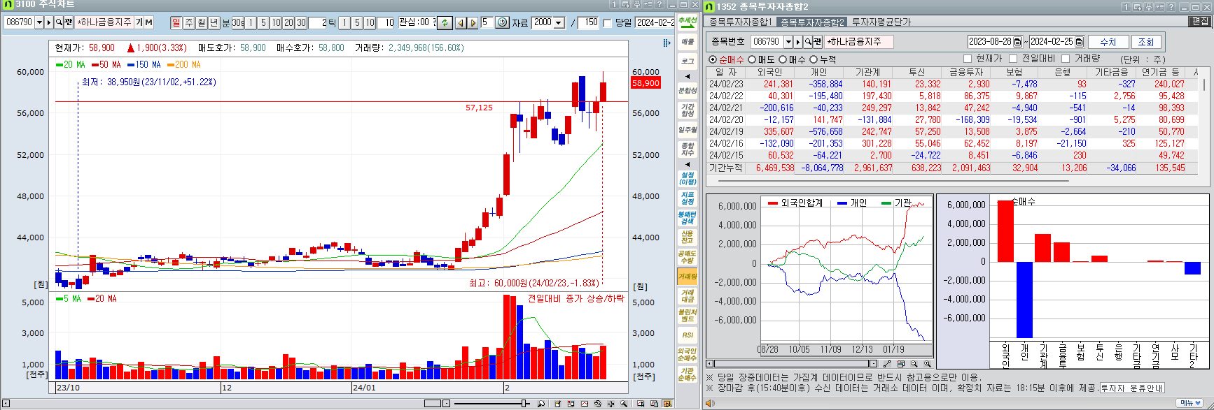 기업은행을 하나금융으로 교체매매