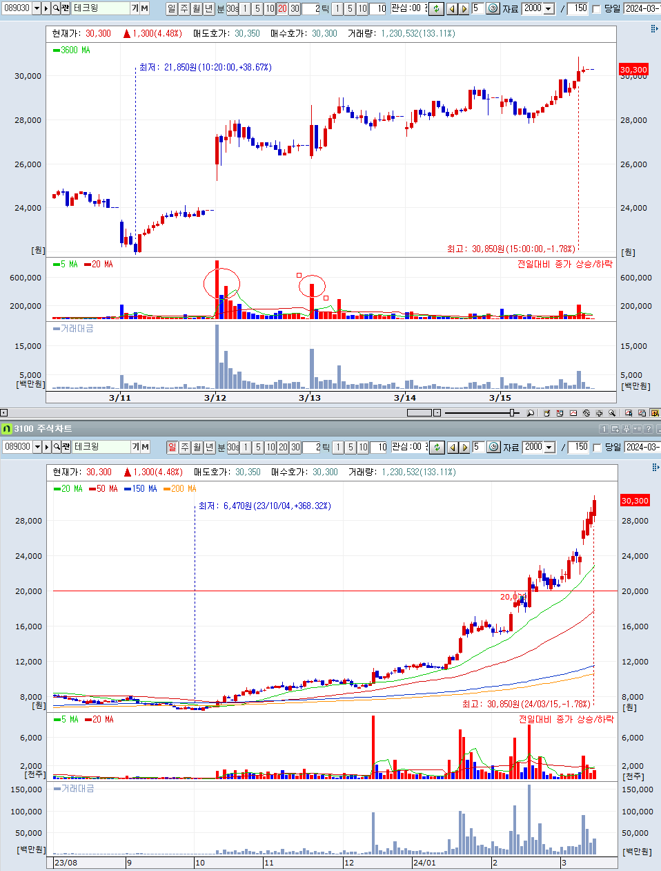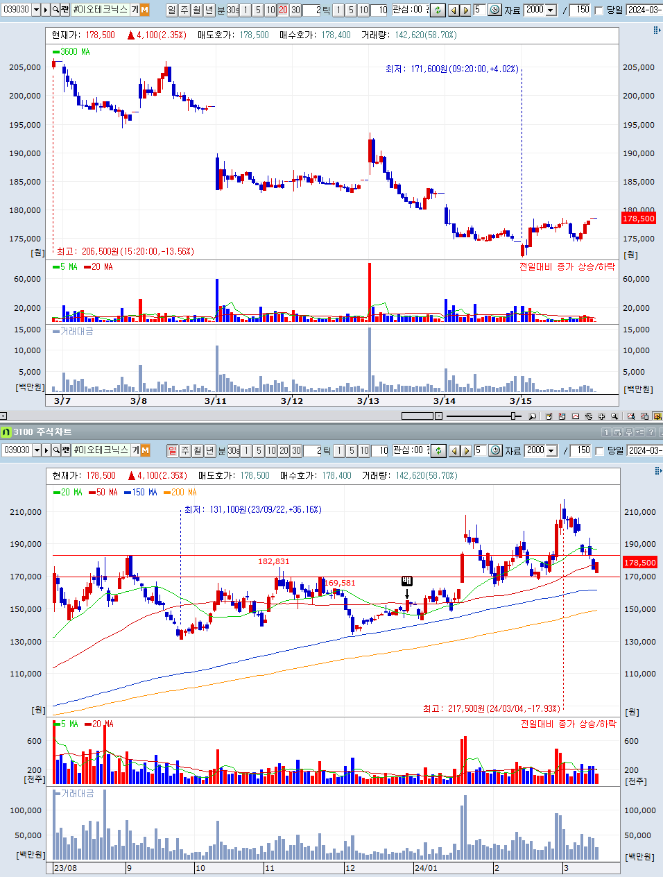 2024년 3월 15일 금요일 : HPSP 거래량이 쏘쏘하여 매도하고 리노 재매수.