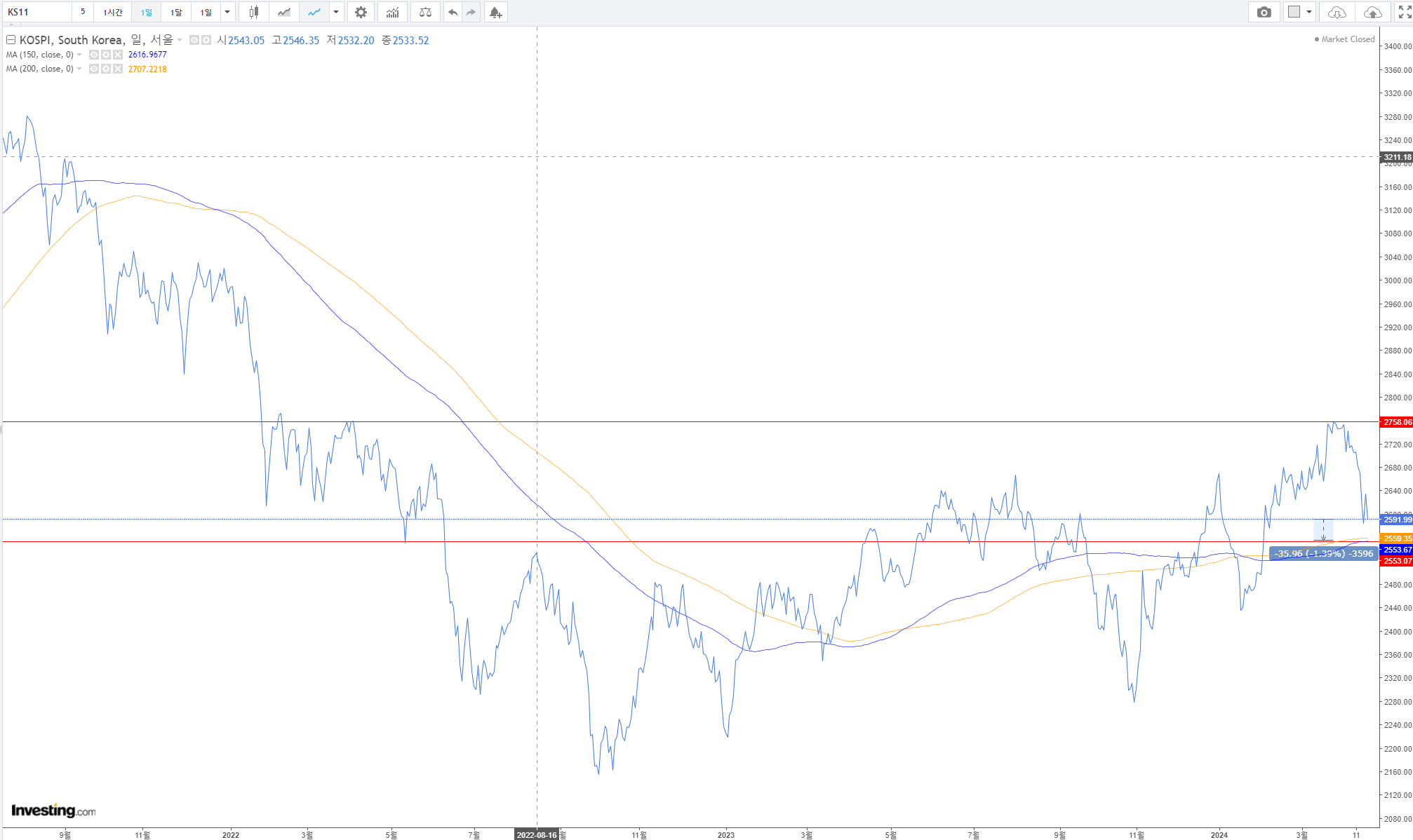 이번 주는 워낙 글로벌 이슈로 인한 변동성이 심해서 대응을 어떻게 해야 하는지가 관건일 것 같다. 하루하루 변동성이 워낙 심하다. 기술적으로는 손절을 잡고 2,500pt에서 잡는 것도 방법이지만 정석은 반등을 보고 들어가는 것이다. 전쟁이슈는 처음에는 강력하게 작용하지만 갈수록 익숙해지는 경향이 있긴하다. 알면서도 인플레 이슈등 여러가지 문제가 있다보니 나머지 현금을 빠르게 쓰기에는 부담스럽다.