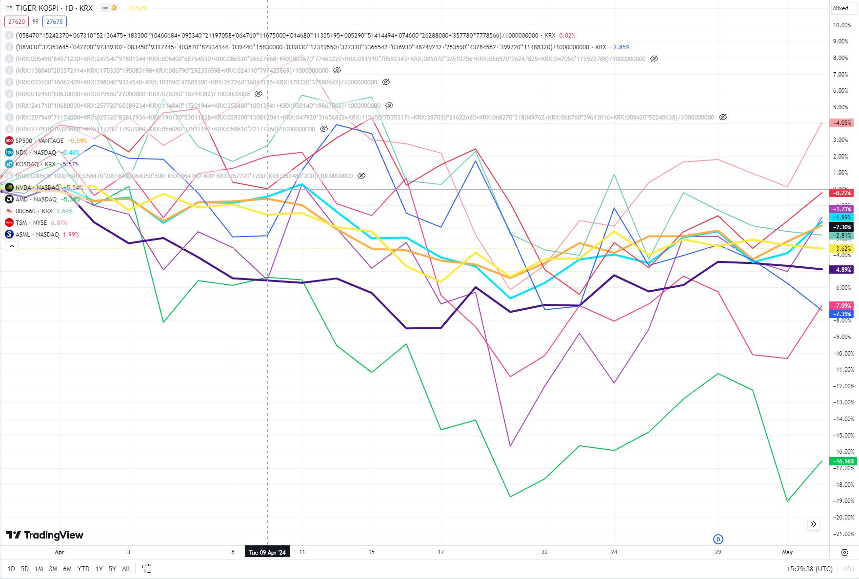 벌써 5월이다. 방향 없는 장, 재미없는 장이 지속되는 중이다. 매매하기에는 딱히 좋은 구간이 아니었으며, 많은 돌파가 실패로 돌아갔음.