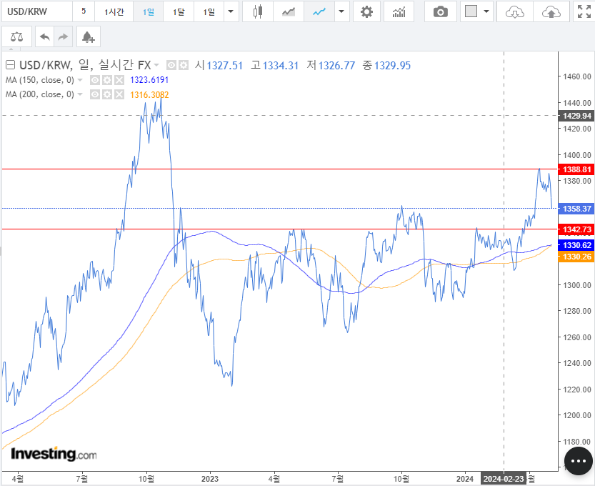 1. 원달러 환율 : 환율이 안정적으로 내려왔다. 좋다. 하지만 지지받을 수 있는 구간으로 보며, 하락의 방향성을 유지할까는 의문임. 매크로가 조금 안정되는 느낌.