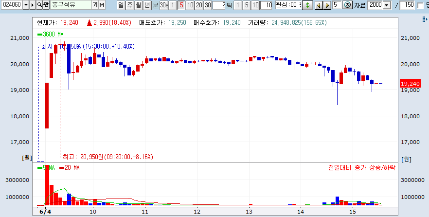 - 잘못한 점 : 기회를 놓치고 싶지 않아서 돈을 잃었음. 매수는 14시에 하고자 하였지만, 포모에 의하여 장초에 매수하였음. 해당 상황을 자세히 기술하면 최초 한국석유가 상한가 직행하고 ankor와 흥구석유가 그 다음그다음 상승, 한국가스공사가 그다음 상승률을 보여주었음. 흥구석유의 돌파라인인 19,000원 돌파성공시 원래 책정하였던 비중을 편입. 흥구석유가 상한가 가깝게 가면서 유동성이 한국가스공사로 몰릴 것으로 예상하던 중, 돌파가 나왔으며 매수하였음. 바로 하락이 나왔고 14시에 손절. 돌파매매를 시행한 것은 좋았으나, 희망회로를 돌려서 예정보다 큰 비중을 투입한 것은 잘못. 한국가스공사의 변동성이 굉장하였음. 낮잠 이슈로 약간 늦게 확인하였으나 빠르게 손절하고 나온 것은 불행 중 다행. 최단기간 손절 기록. 상한가가 이틀연속 나오는 것은 굉장히 드문 일이다. 성급하게 매매하지 말아야 한다.