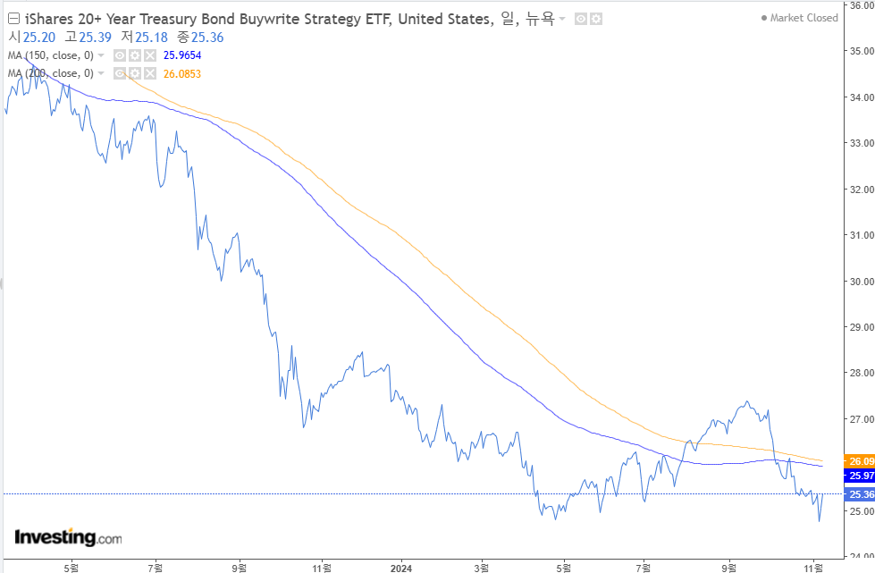 4. TLT, TLTW : 여전히 박스권으로 1단계 건전하게 형성하는 중. 분할매수를 시작하였으나 약간 하락하였음. 매주 일정비율씩 매수예정인데 90달러면 충분히 괜찮아보인다. TLTW도 25달러면 충분히 매력적으로 보인다. 다음 주에도 매수할 예정이다. 아쉽게 저점은 잡지 못하였다. 사실 채권금리가 올라가는 것이 개인적으론 이해가 가지 않았다. 트럼프 행동을 볼 때 무조건 금리인하하라고 푸시했었는데... 이 정도 흐름이 정상화된 것 같다. 아직 40% 정도밖에 매수하지 못하였다.