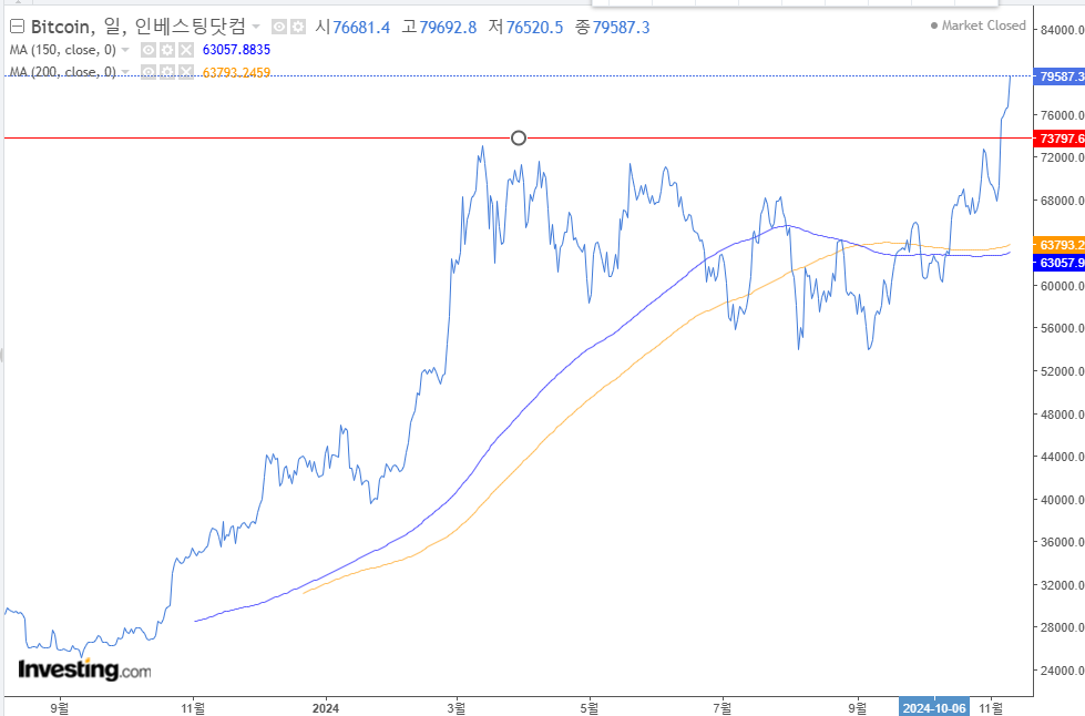 다행이다. 지옥에서 돌아왔다. 컵앤핸들 모양을 찾아다니지는 않지만, 딱 컵 앤 핸들모양으로 보인다. 트럼프 당선우세 이후 추세를 탄 모양새이다. 좋다. BTC, SOL, BNB 좋다. 가상자산은 신고가 후에는 주식보다 더 미지의 영역이다.