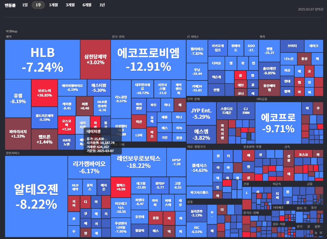 방향성이 잘 안 보이는 장. 국내장도 풀베팅보다는 방산, 보로노이, 피부미용은 풀백이 맞나..? 정도만 일부 유지하면서 관망. 방산에서도 투자경고 풀리는 현대로템은 다소 베팅적 매매. 한화에어로, 한국항공우주 좋음.