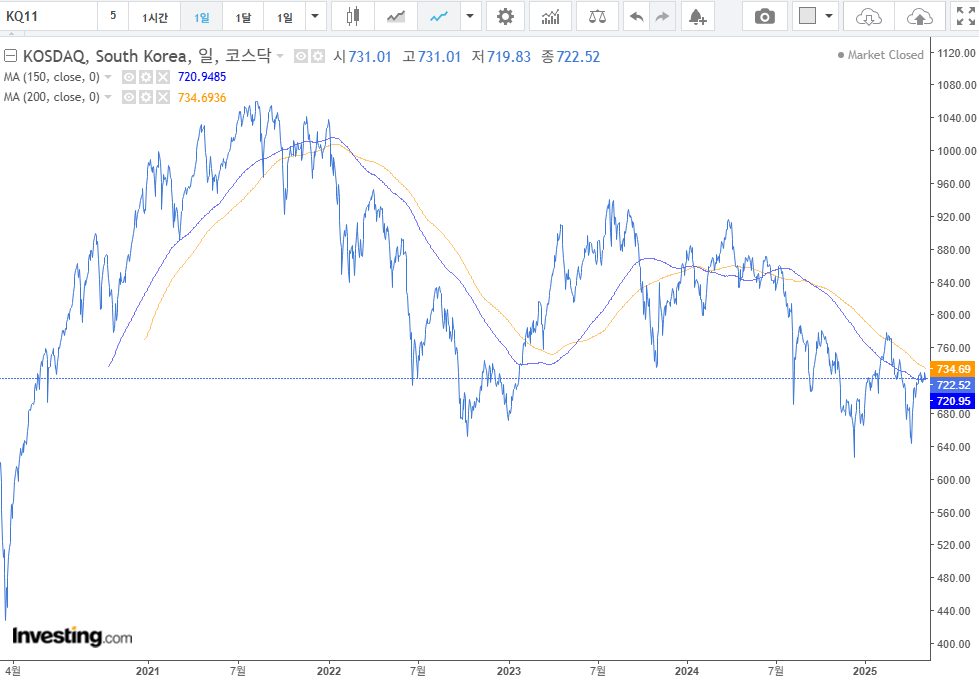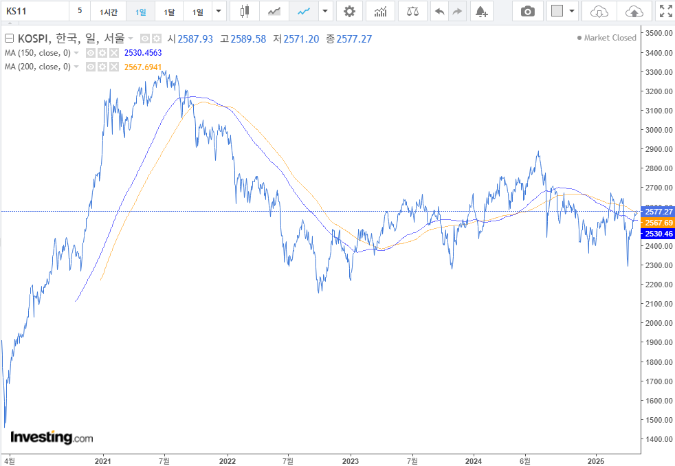 2. 미국 : 가격저항, 이평선 저항등 저항선이 촘촘한 구간이다. 큰 상승 보다는 방향성을 확인하고 싶다. 5,500pt 이하에서는 퇴직연금 분할매수를 다시 시작할까 한다. 팔란티어는 조정받을 때 매수를 진행하였다. 사실 뭔가 행동하기에는 다소 애매한 위치 긴한 것 같다.