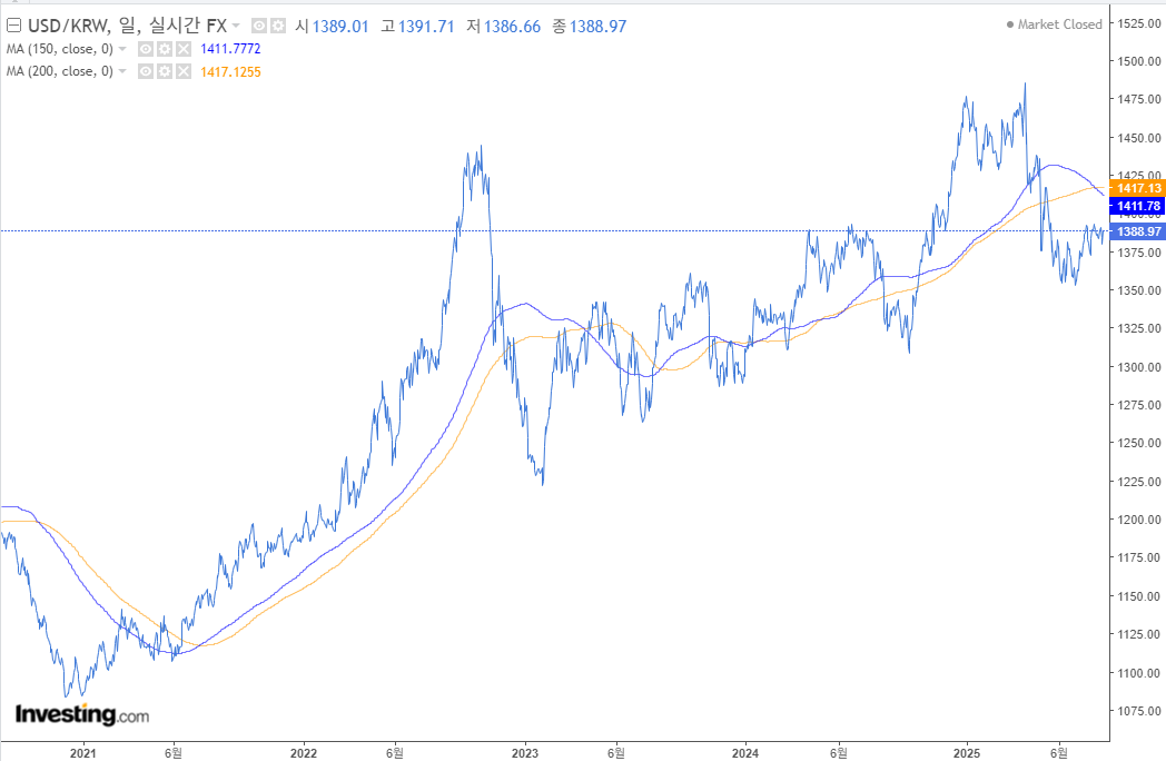 1. 원달러 환율 : 1,380~1,390원 부근에서 횡보하고 있다. 환율이 추가적으로 내려가면서 삼전이나 코스피 전반으로 지수돌파를 기대하고 있으나, 동력이 꺼진 상태에서 약간 쉬어가는 느낌이다.