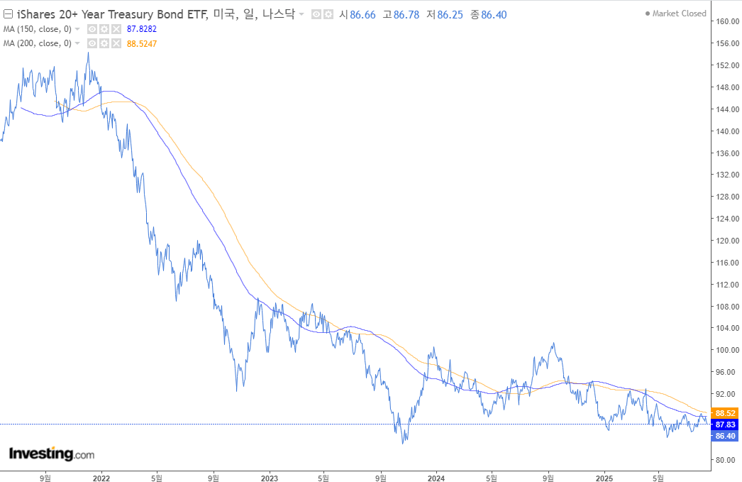 4. TLT : 미국채가 살짝 조정받는 모습. 참 애매하다. 그래도 1단계에 들어갔다고 생각했는데... 이평선 위로는 올라와주면 좋을 것 같다.