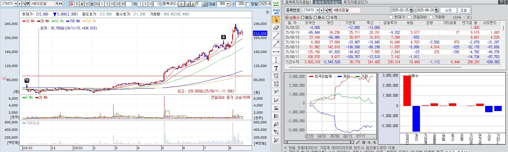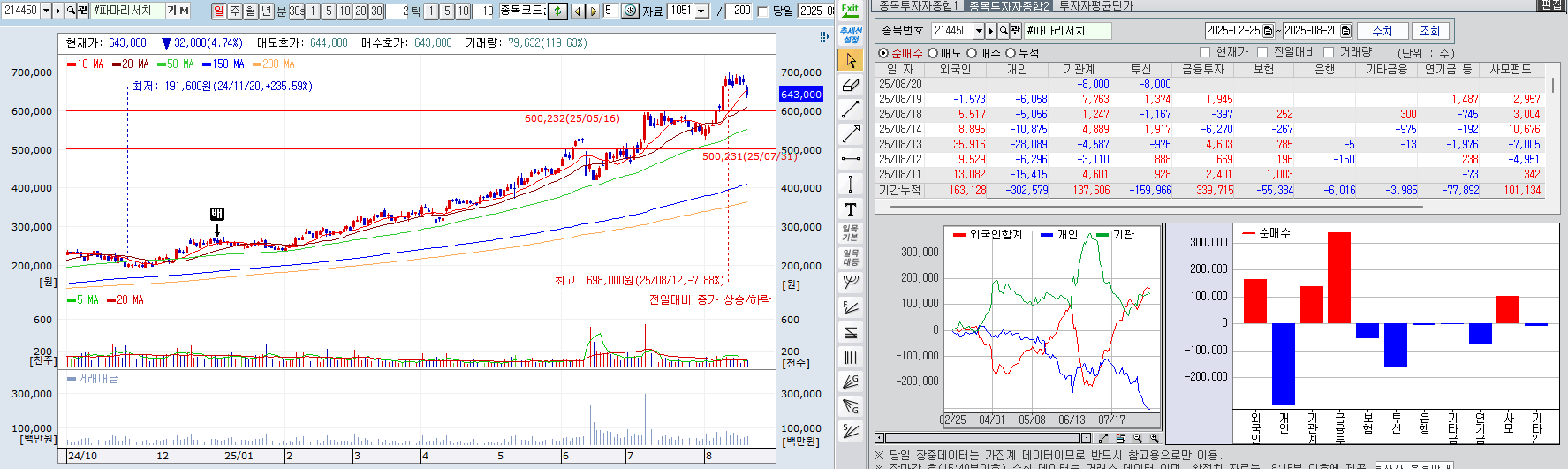 2. 피부미용, 화장품 : 파마리서치, 에이피알, 펌텍코리아 등 주도주를 제외한 종목들은 7월부터 하락세가 있었다. 실적을 증명하면서 캐리 하던 종목을 제외하고는 달바글로벌 실적쇼크 이후 크게 하락하였다. 업종 전반의 실적개선으로 인한 동반상승의 국면은 7월부터 희미해지다가, 8월 실적쇼코 확인 후 종료되었다. 이제는 급등이 더 어려운 상황이지만, 오히려 실적이 증명된 주식들은 더 자금이 쏠리면서 차별화가 강해지는 시간이 올 수도 있다고 본다. 수급도 파마리서치, 에이피알, 펌텍코리아 정도가 유의미하다. 해당 종목들은 추세가 전혀 훼손되지 않았다. 3단계로 가는 것일 수도 있지만, 이전에도 다시 2단계로 돌아왔던 적이 있다.(그때는 숏을 하고 숏 손절 후 포지션을 잡았었다) [에이피알, 파마리서치 포지션 확보 가능]