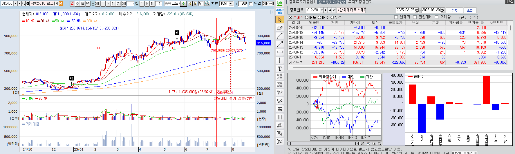 5. 방산 : 실적개선 + 전쟁이슈로 상반기 상승이 나왔었다. 현재 전쟁이 마무리되는 국면으로 해당 트리거가 사라지면서 일부 주가를 반납, 추세가 전환되고 있는 느낌이다. 몇 번 돌파시도를 노렸으나 실패하여 현재 포지션은 없다. 추세가 안 나오는 업종으로 굉장히 애를 많이 먹고 손실이 누적되었다. 넥스원의 수급은 양호해 보이나 현재 어디로 갈지 모르는 상황, 내러티브도 약화되는 시점으로 관망하며 장기적 시각으로 보는 것이 좋아 보인다. [포지션 X]