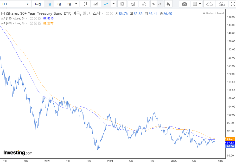 4. TLT : 미국채가 살짝 조정받는 모습. 참 애매하다. 그래도 1단계에 들어갔다고 생각했는데... 이평선 위로는 올라와주면 좋을 것 같다. 투자시점이 상당히 빨랐던 것 같다.