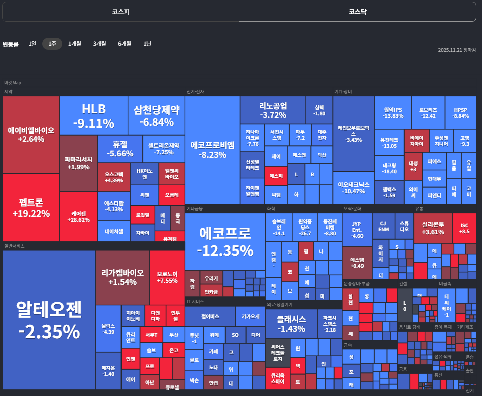 미국과 동일하게 바이오주식만 성과가 좋은 시장이다. 코스닥의 거래대금은 상대적으로 많이 증가하지 않은만큼 감소폭도 작았다.