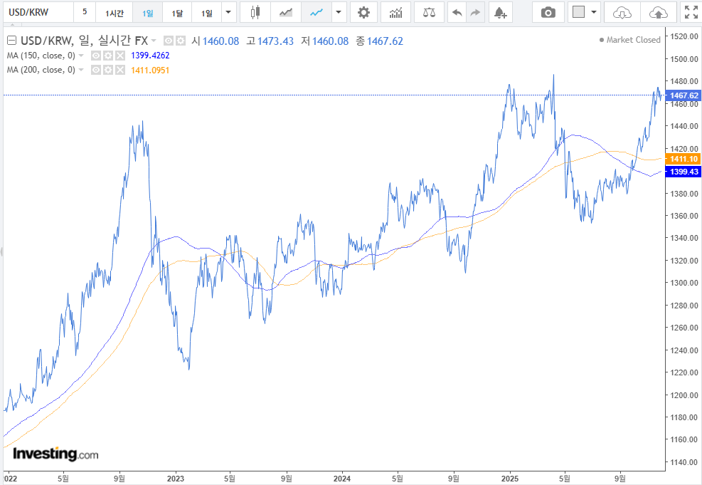 1. 원달러 환율 : 환율이 계속 높은 상태, 당국에서도 인지를 하고 다양한 이야기가 나오고 있는 중. 전고점에서 머무르는 상황으로 다음 방향성은 어느 쪽일지는 미지수이다.