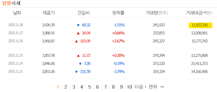 AI 버블에 대한 의구심이 매도를 불러온 가운데 어느정도 기간조정은 필요하지 않을까 생각은 한다. 아마 다음 실적발표가 나오면서 그 의구심을 비웃는 순간 연달아서 신고가 돌파에 성공하는 시나리오가 가능하지 않을까.