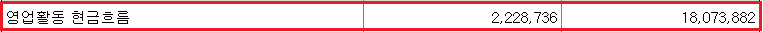 영업활동으로 인한 현금흐름은 말그대로 기업의 영업활동으로 인한 현금흐름입니다. 당연히 기업은 이윤을 창출해야 하므로, 이 부분은 +(흑자, 현금이 들어왔다) 여야 합니다. 몇 분기 정도는 일시적인 상황에 의해 적자일 수 있지만, 2~3년 정도 적자라면 문제가 있다고 봐야 합니다.