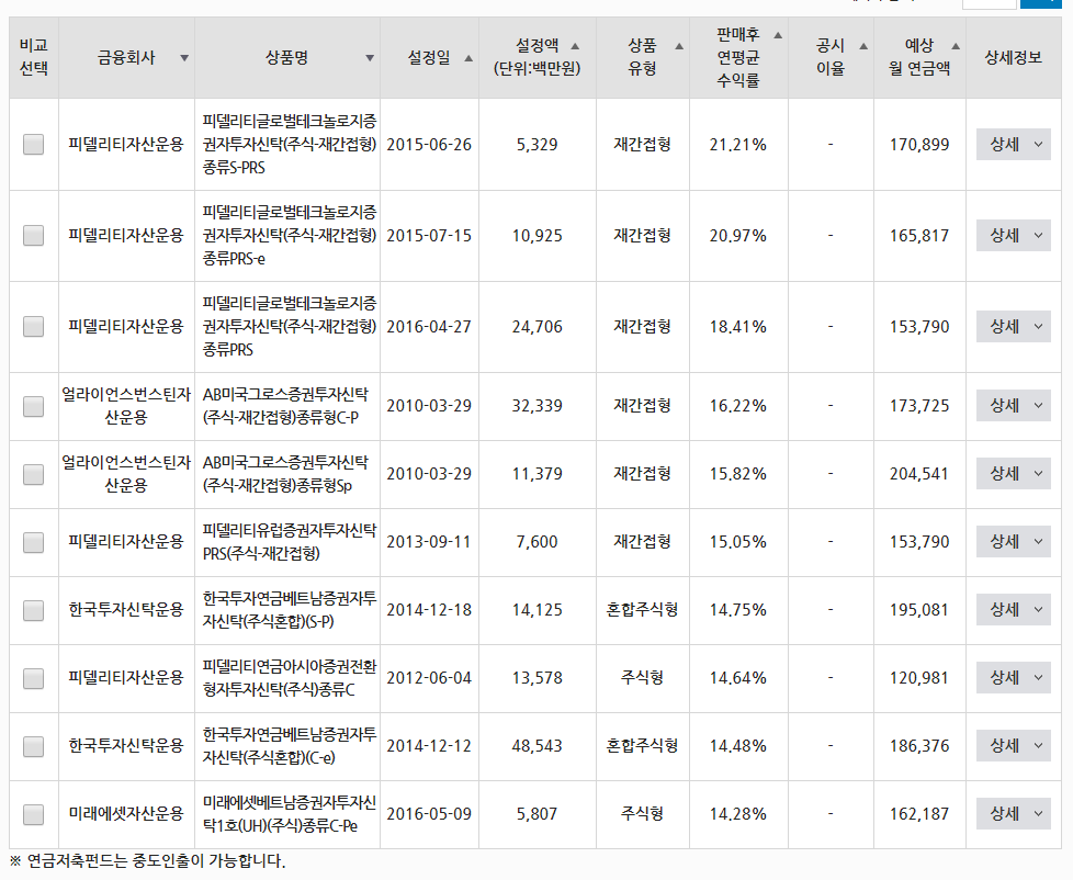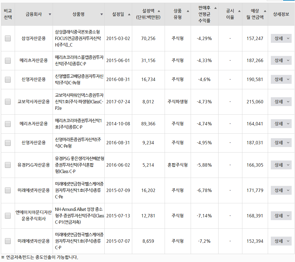 [금융상품한눈에]라는 사이트에서 찾아볼 수 있는 연금저축별 수익률입니다.