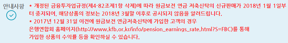 O 연금저축신탁 => 18년 3월이후 신규판매가 중지되었습니다. 18년도 자료 확인 결과 수익률 2% 이하, 수수료 0.7%가량