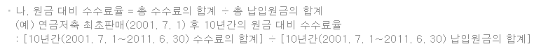 | 구 분 | 총 납입원금대비 수수료율(30년간) | 연금저축펀드 1억 2천만원 투자 시 수수료(연 400만원 X 30년) |