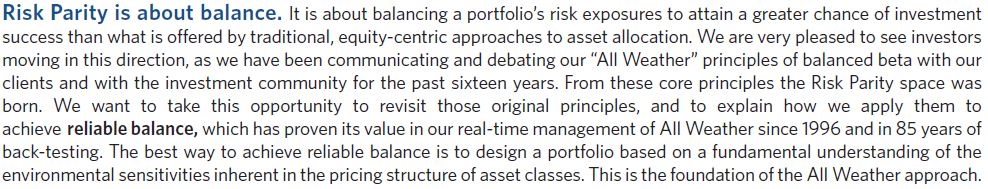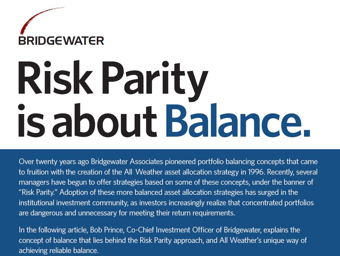 2004 : 브릿지워터는 균형 원리를 설명하는 "목표 수익 및 위험 설계"(링크클릭)을 발행한다.(기존 해석 완료)