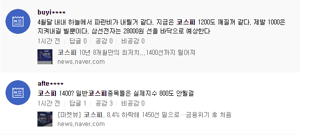 한편 시장의 비관주의가 만연하며, 버블 장세와 비슷하게 "내가 뭐랬어? 코스피 XXX포인트 간다니까!"라는 이야기가 많아지고 있습니다. 비관론자는 보통 1000포인트를 이야기하는데 어떤 분은 500포인트도 이야기하는 것 같습니다.