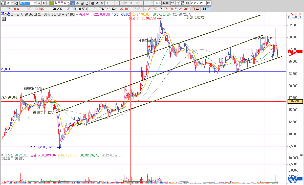 유일하게 하락장에서 좋은 뉴스와 함께 추세를 지킨 켐트로닉스이다. 그나마 계좌가 덜 깨졌던것은 이 종목 덕분인 것 같다.
