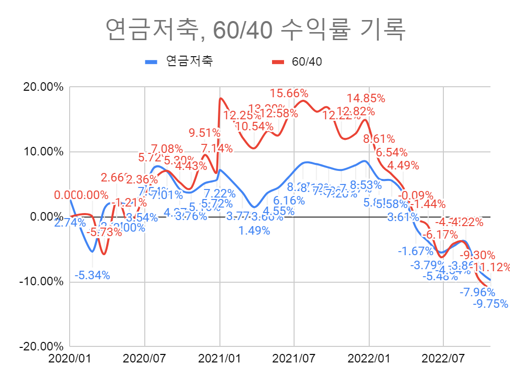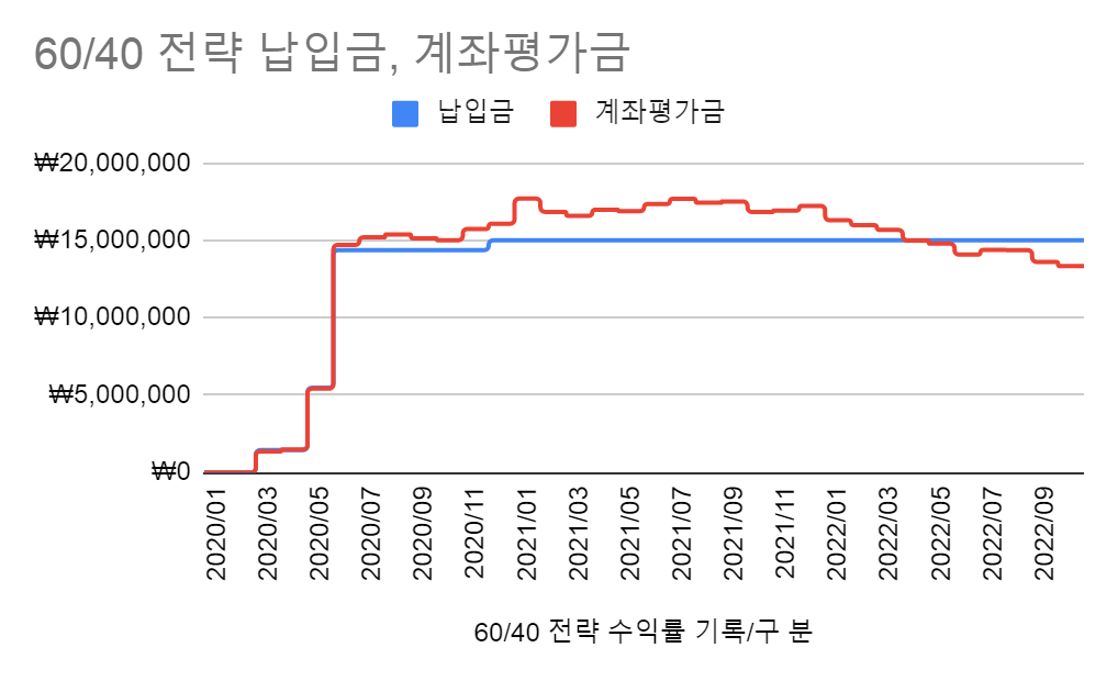 이런식의 그래프를 그리고 있다. 특이한 점은 리밸런싱을 할때 주식을 팔고 채권을 사라는 신호가 나와서 그렇게 리밸런싱하였다. 3월 이후로는 계속 마이너스 수익률을 기록중...