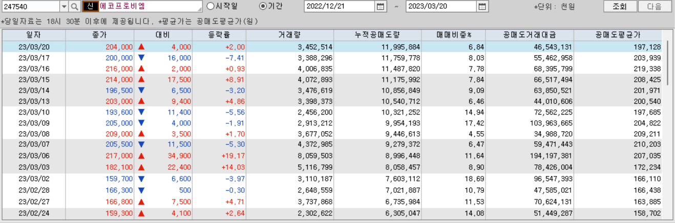 에코프로비엠 : 최근 단기간내에 급등하였음. 5일선과 10일선이 만나는 지점, 횡보가 매우 적었으며 변동성이 매우 큼, 향방예측이 어려우며 죽음의 계곡 진입인지 횡보인지 확실하기 어려움. 개인이 매수주체인점, 인간지표, 과열양상