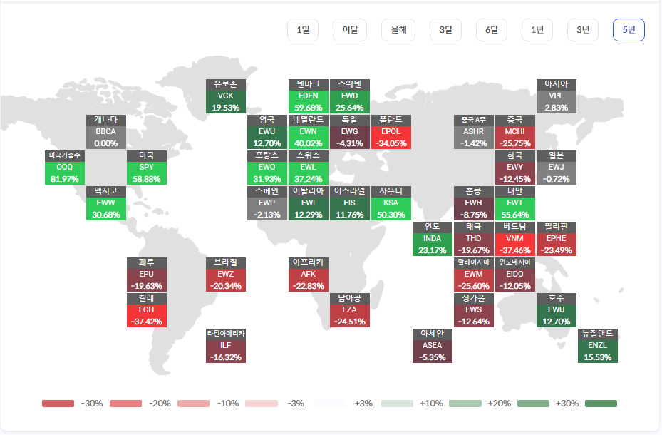 머리가 가장 덜 아픈 투자는 그런 의미에서 자산배분이다. 오늘 자산배분 리밸런싱을 하며 Snowball 72에서 과거 ETF의 수익률을 보는데 참 재미있다. 1년 동안 수익률... 5년 동안 수익률... 여러 화려한 종목들이 있었지만 지수가 박스권이었다는 것은 결국 그 종목들도 다시 조정을 받았을 확률이 크다. 반면에 미국은 참 대단한 성과를 보여준다. 단기적인 뉴스에 시선을 빼앗기지고 많은 것을 잊어버리고 산다. 그런 의미에서 백테스트는 항상 중요하다.