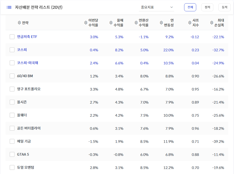 자산배분전략이 채권가격의 하락 때문에 상대적으로 퍼포먼스가 저조하지만, 장기적 시계열로 보면 하방이 막혀있다고 생각되기에 앞으로가 더 기대된다. 이번 달 수익률은 자산배분이 더 좋았다. Snowball72에서 제공하는 여러 포트폴리오 중에 내 포트폴리오가 최근 수익률은 나쁘지 않은 것 같아서 다행이다.
