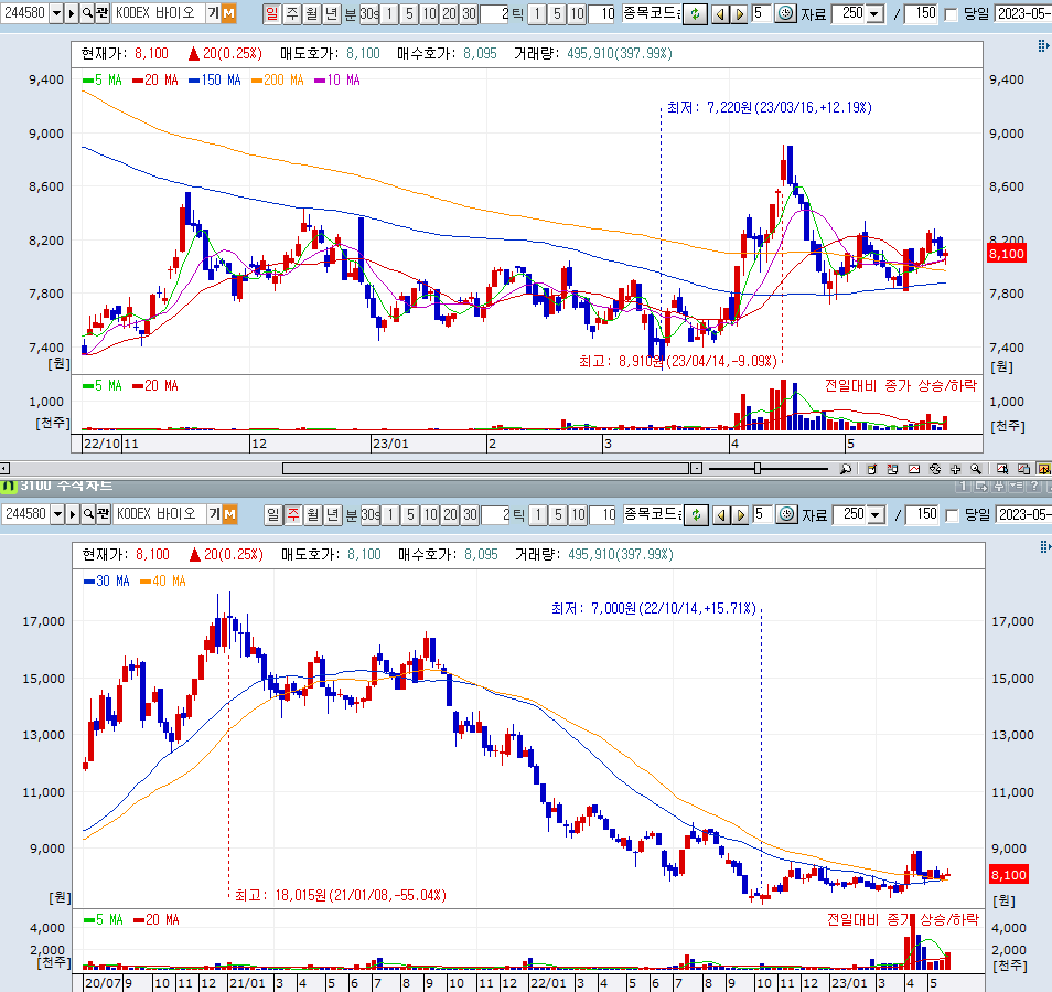 바이오섹터는 크게 거래량이 터지긴하였지만, 1단계가 지속되는 상황인지 2단계인지는 확신은 가지 않는다. 하지만 거래량이 아주 크게 상승했고, 개별 종목의 단계가 2단계가 시작된 것으로 보아서 업종도 2단계에 진입하였다고 생각하고 있음. 하지만 바이오 개별종목은 워낙 불안해서 하더라도 ETF를 매매하는 것을 선호할 것 같다.
