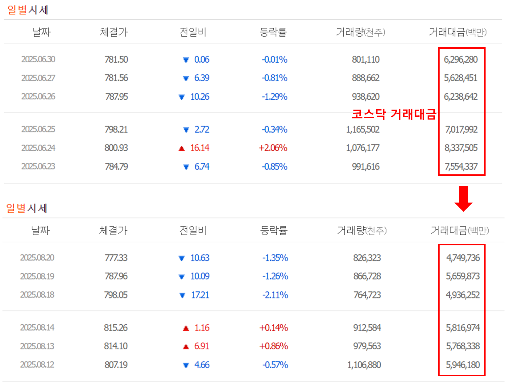 코스피와는 대조적으로 2일에도 거래대금이 크게 증가하지 않았다.