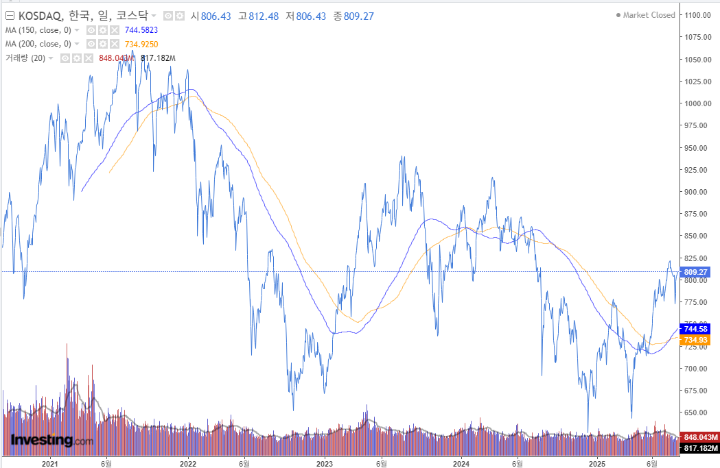 3. 한국 : 거래대금이 아쉬운 상황에서 강한 주도주가 있다고 보기보다는 상반기 트럼프 사태때처럼 주도주가 없으니 조선은 갈 길가는 느낌이다. 전력주의 흐름도 나쁘지가 않다. 원전 쪽에 다시 시세가 나올까 하는 기대감으로 비에이치아이도 돌파매수하였는데, 애매하게 풀백을 주면서 포지션을 빠르게 정리하였다. 그 자금으로 HD현대일렉을 매수하였다. 돌파를 기대한다. 이제 조금 있으면 실적에 대한 이야기가 나올 때가 되어가고 있다. 그런 반영들이 언제 어떻게 일어날지는 모르겠지만, 실적발표 후 쉬었던 실적주를 다시 보기에 나쁘지 않은 시기 같다고 생각한다. 해당 종목들의 풀백자리는 의미가 있을 것이라고 본다.