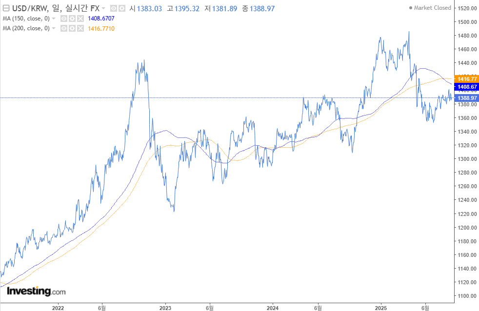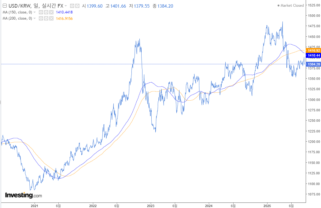 1. 원달러 환율 : 1,380~1,390원 부근에서 횡보하고 있다. 환율이 추가적으로 내려가면서 삼전이나 코스피 전반으로 지수돌파를 기대하고 있으나, 동력이 꺼진 상태에서 약간 쉬어가는 느낌이다.